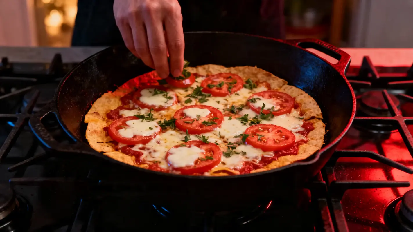 Het snelle dineridee dat uw avonden verandert, is de tortillapizza in de koekenpan. Dit gerecht gebruikt een gewone tarwe- of maïswrap als bodem, die in een hete pan krokant wordt als een dunne pizza. U hebt geen oven nodig en geen rijstijd. De wrap fungeert als ultradunne pizzabodem die in een paar minuten stevig en goudbruin wordt.