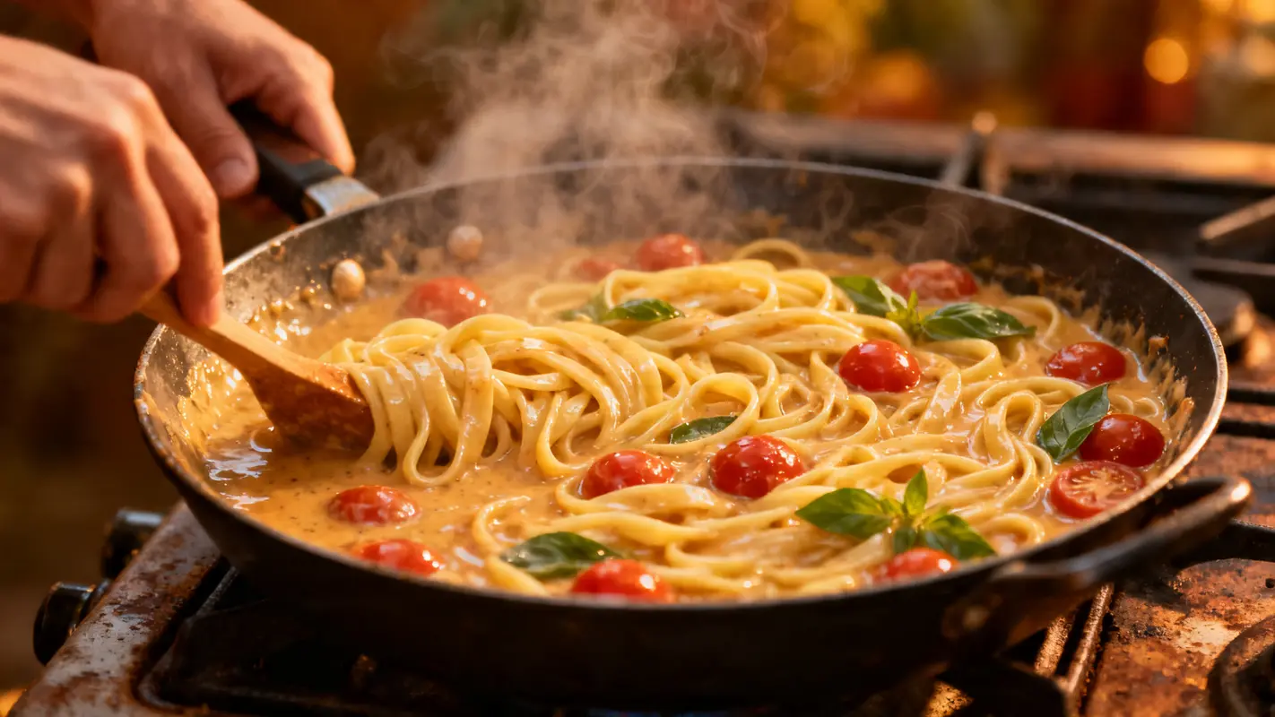Een romige pasta die in één pan ontstaat, zonder gedoe en zonder stapel afwas. Het klinkt bijna te mooi om waar te zijn, zeker op een drukke doordeweekse avond. Toch is er één eenvoudige techniek die dit gerecht in nauwelijks twintig minuten op tafel krijgt en waardoor het verrassend veel smaak ontwikkelt.